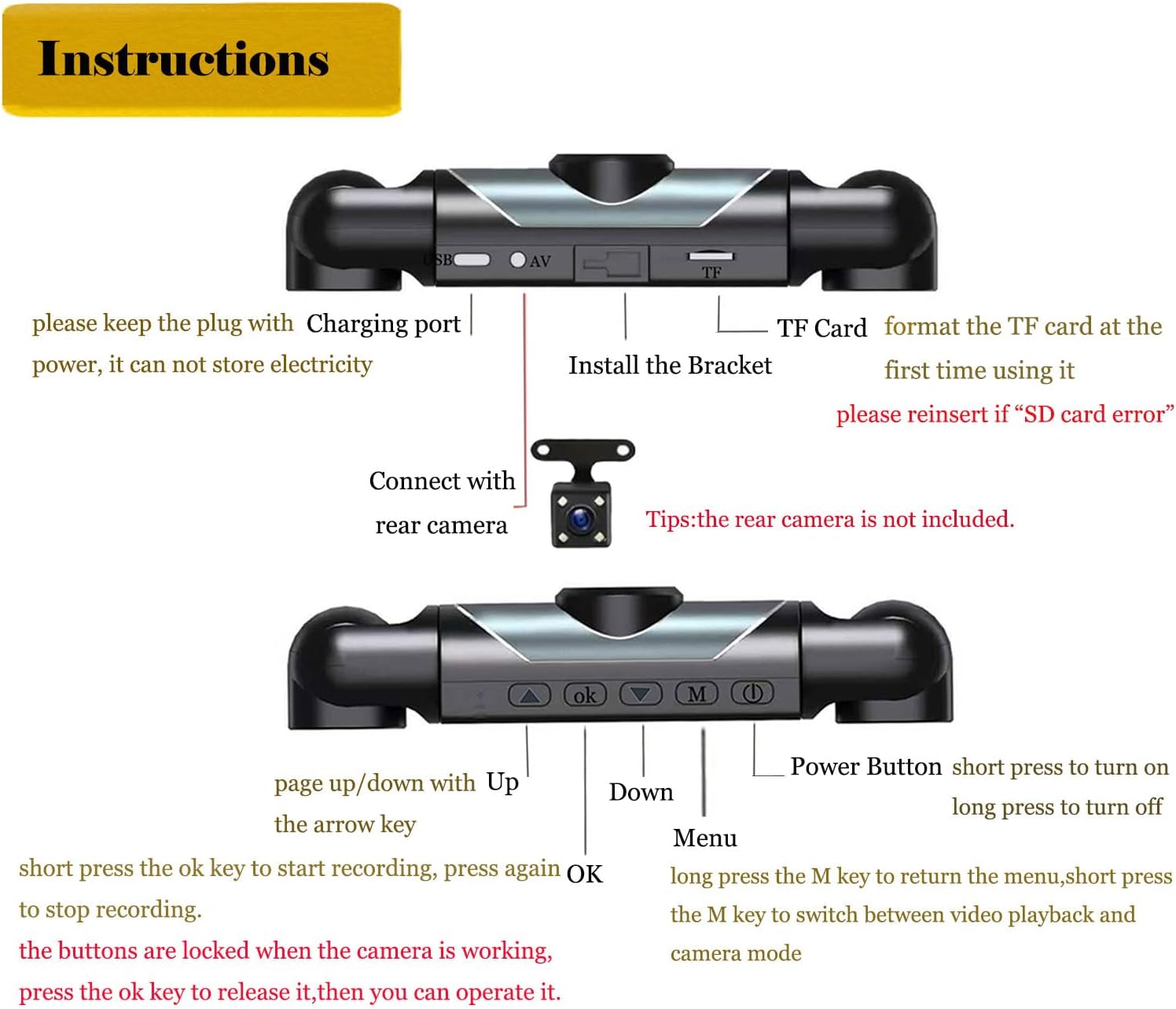- ❀[Easy to Install and Adjust ]The bracket of the dash camera for cars can be adjusted 360 degrees. Installation and use are made easy with the reference images provided in our user manual. Additionally, this 360 dash cam provides an interface to add a rear lens. providing a wide field of 360° view to capture every road detail. Note: the rear camera and hardwire kit does not include.