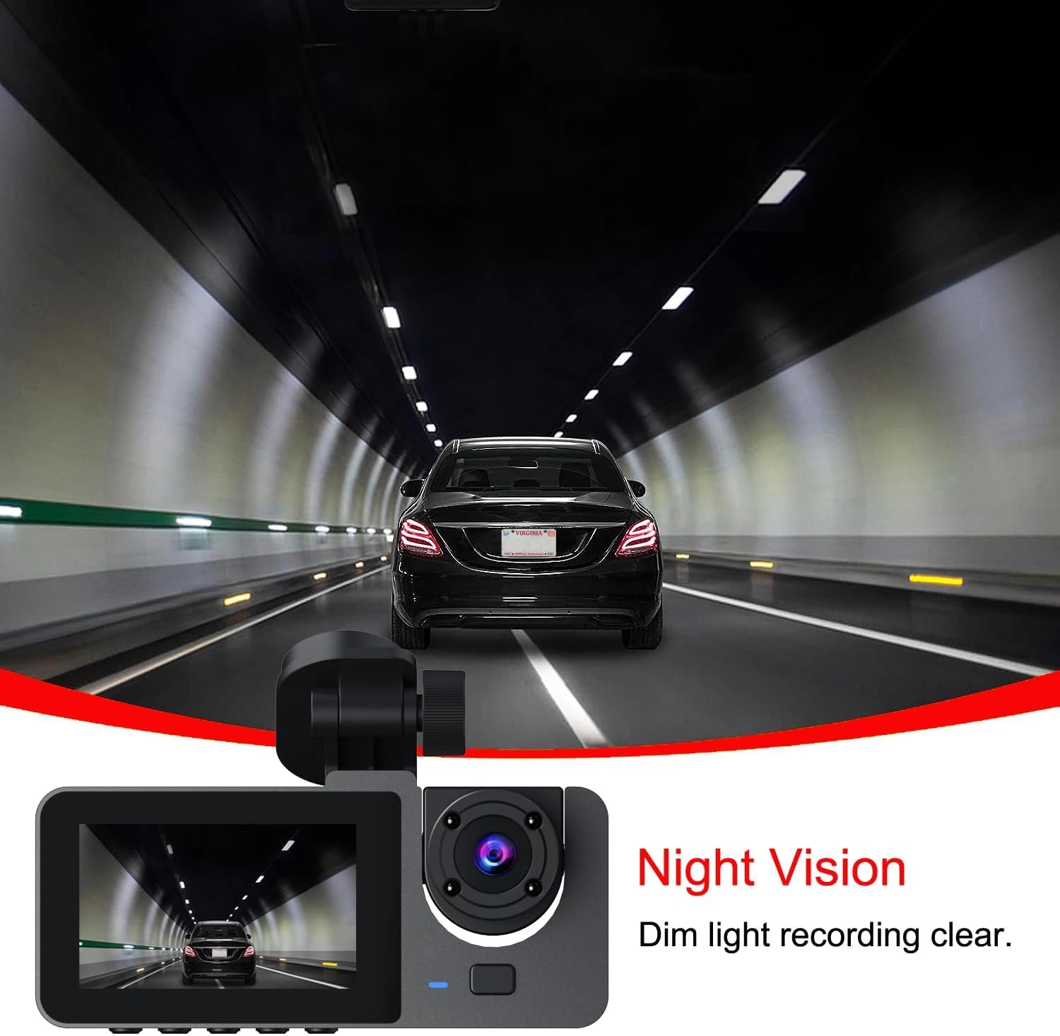 - 2 Inch Screen with Night Vision: You can view the recordings through the 2’’ IPS screen, or take SD card out to view on PC. The night vision light can let the car camera work at dark environment.